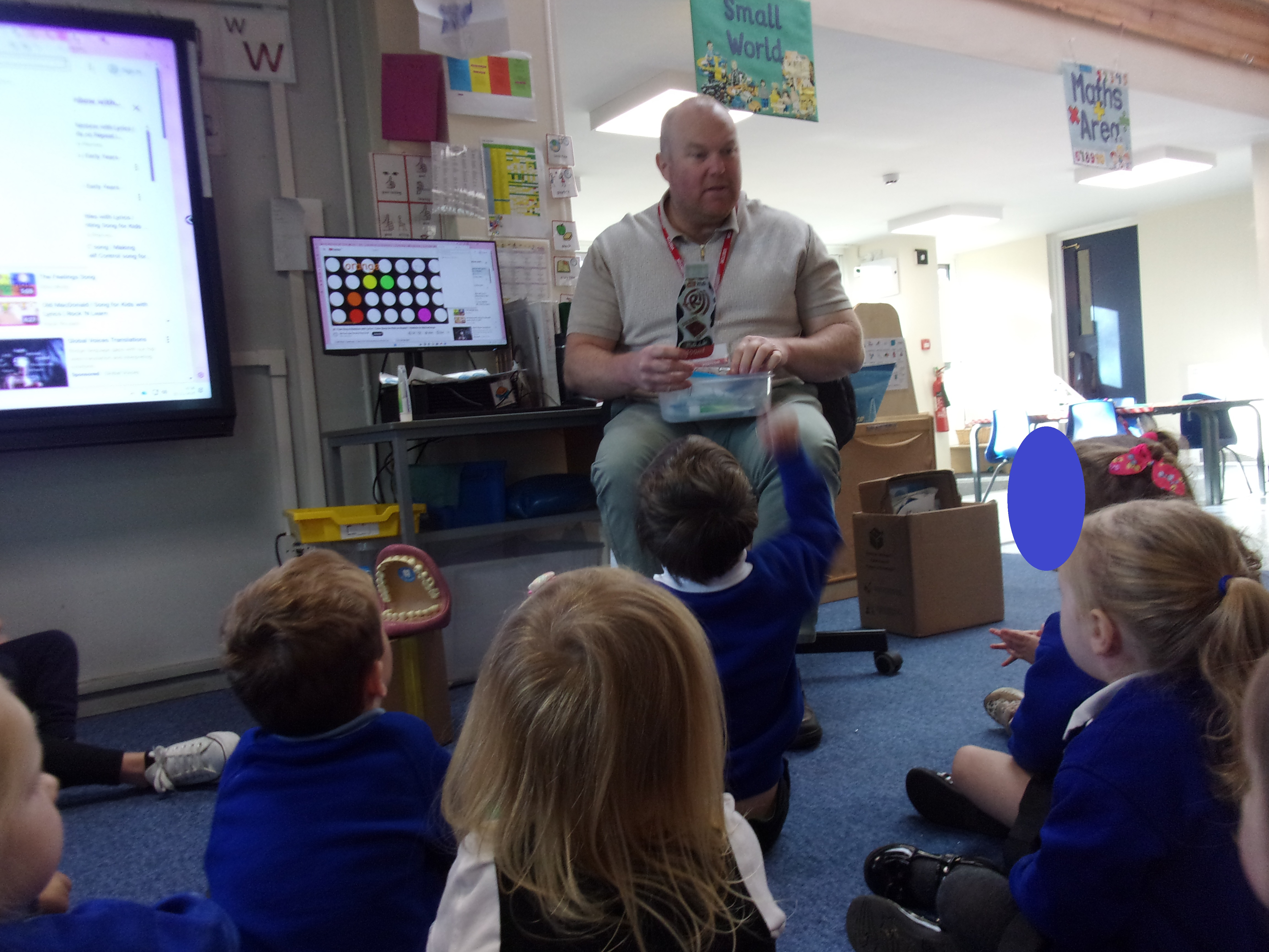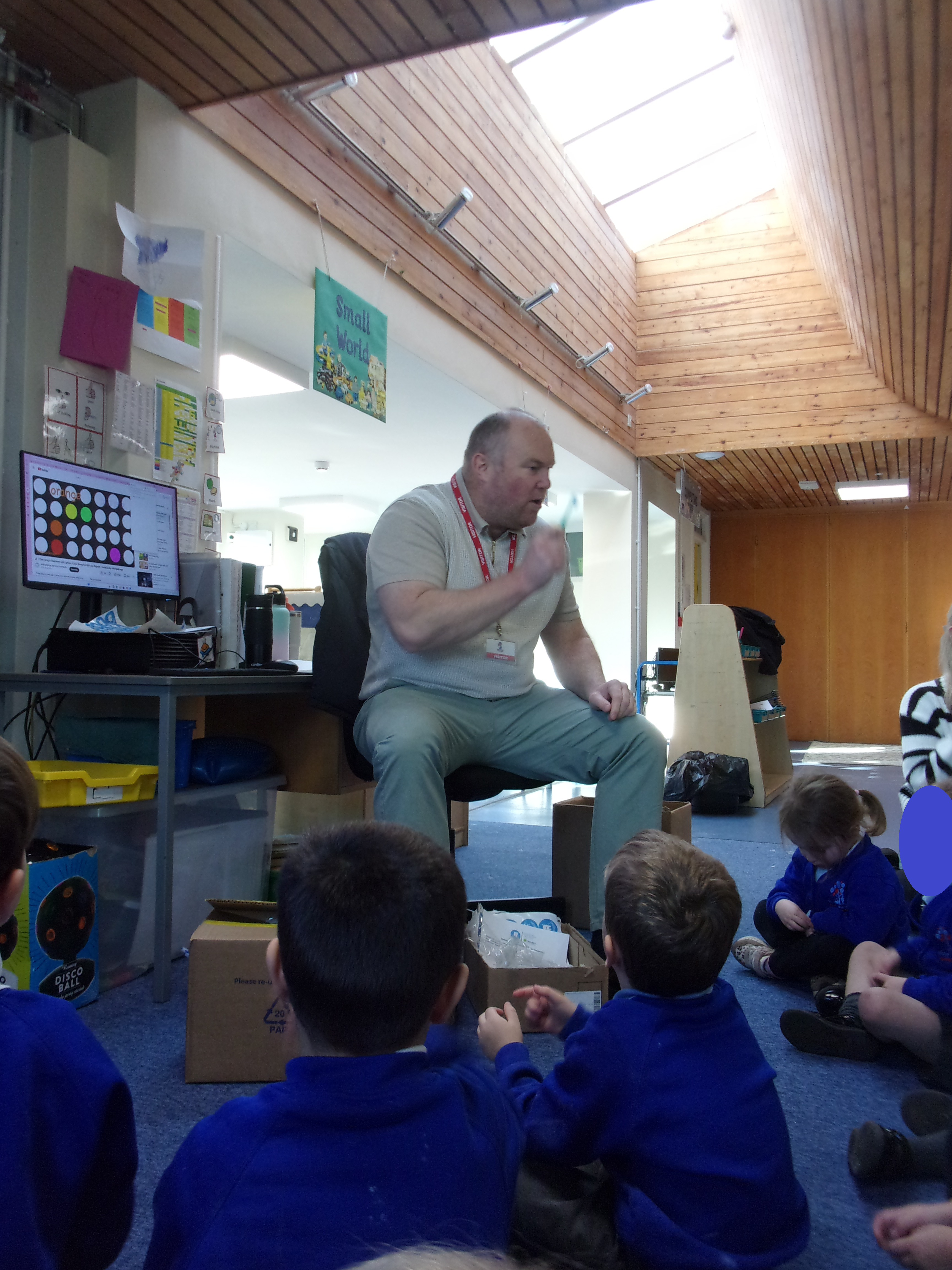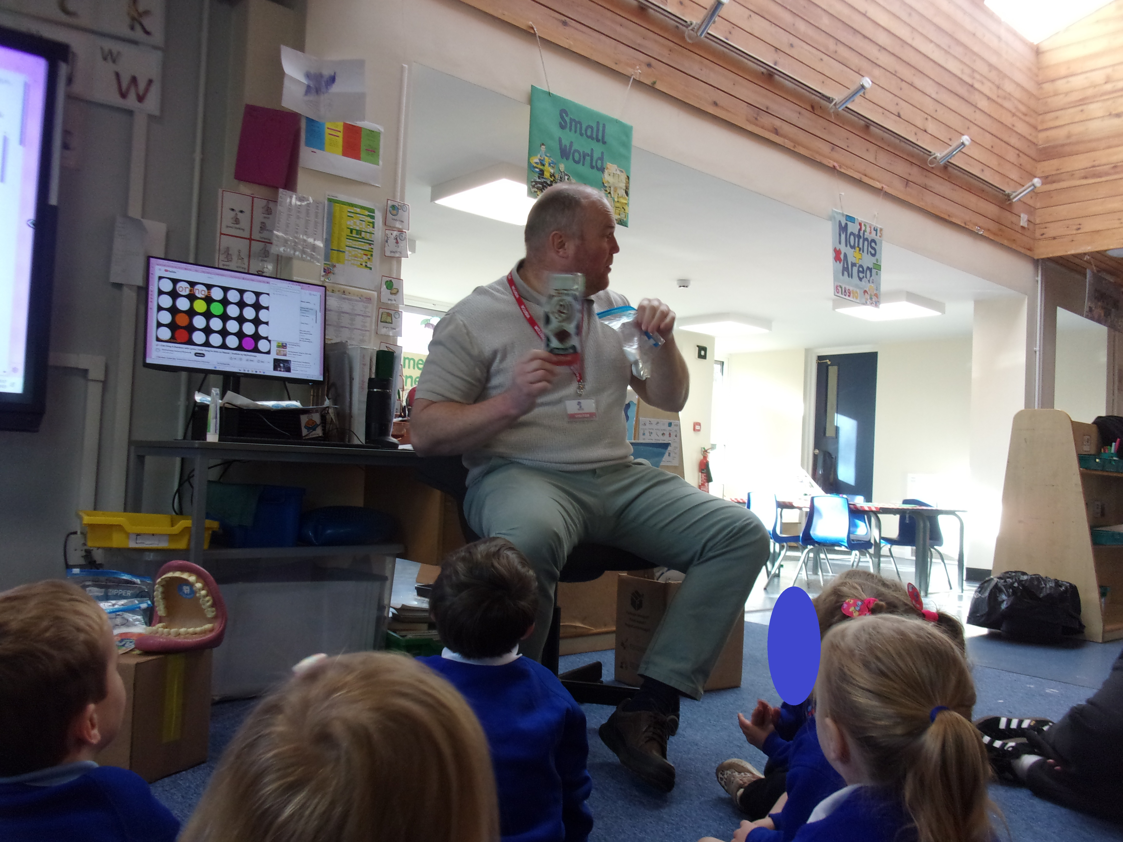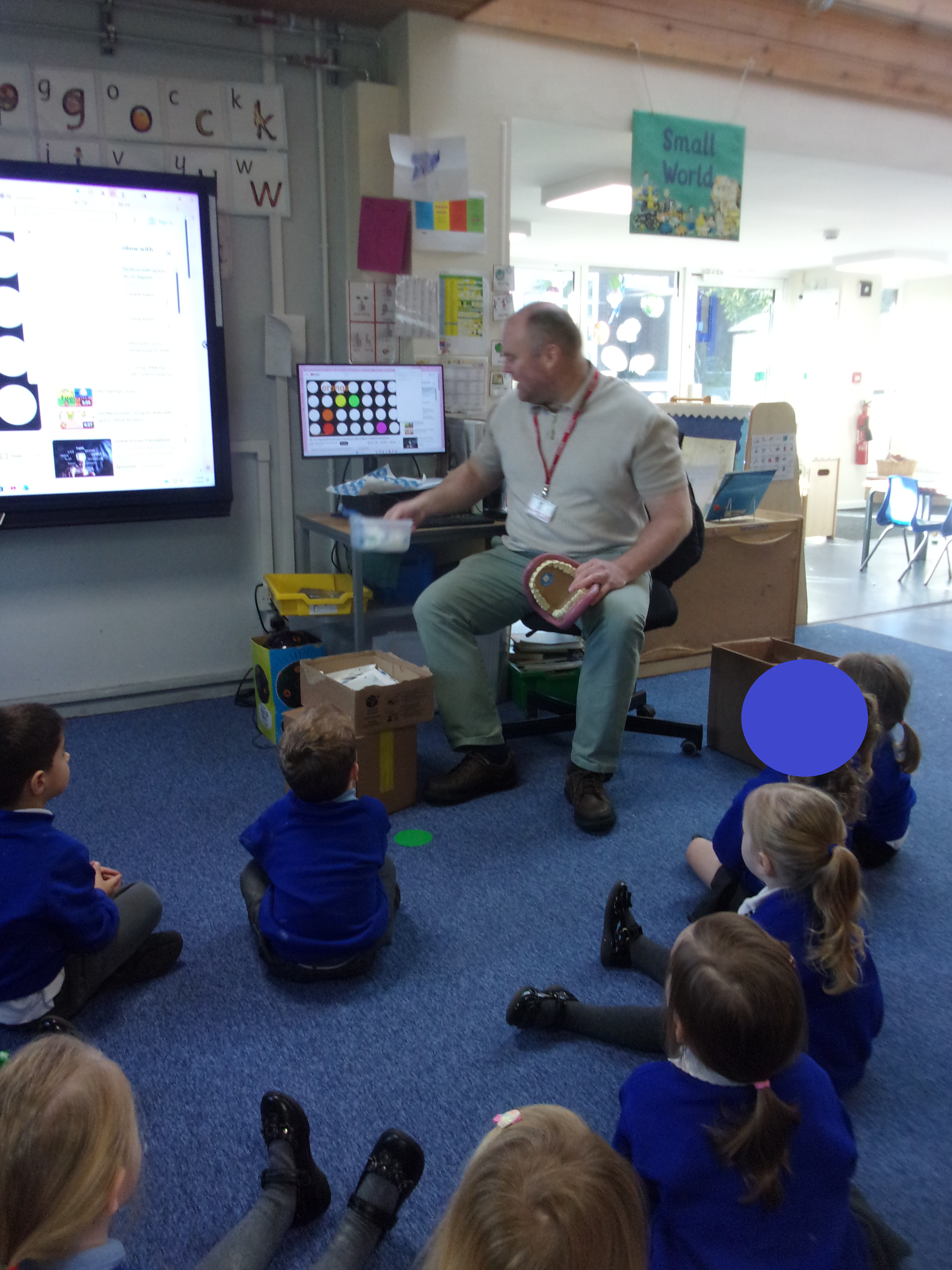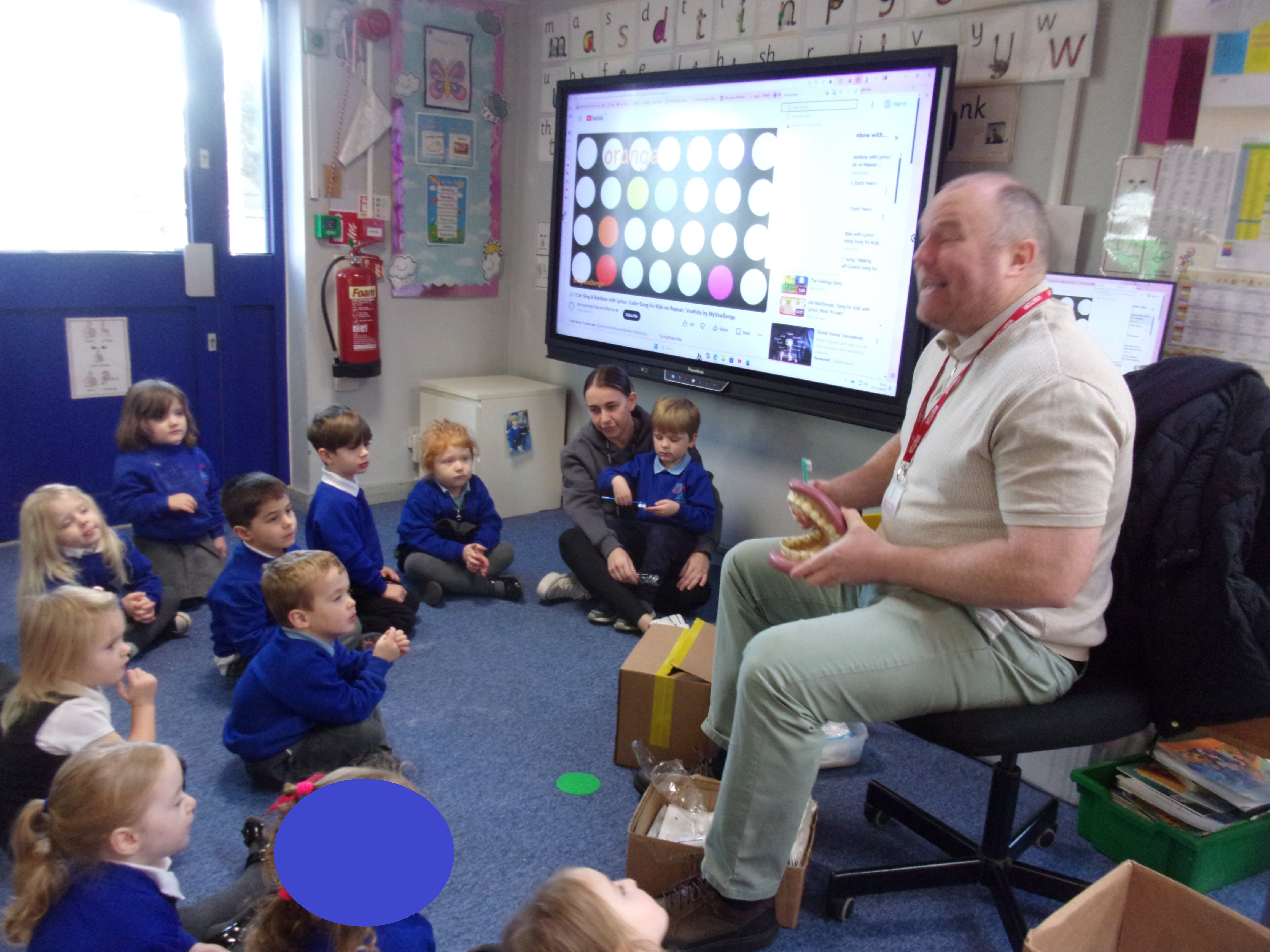 We recently invited a local dentist in to visit our setting. He spoke to our children about getting into good oral routines and was able to show the children how to brush their teeth properly using his giant pretend mouth and toothbrush. He also spoke to the children about how often and for how long we should brush our teeth and about foods that are good or bad for our teeth. All the children enjoyed having our visitor and were each able to take home a tube of toothpaste and toothbrush so that they could get practising.