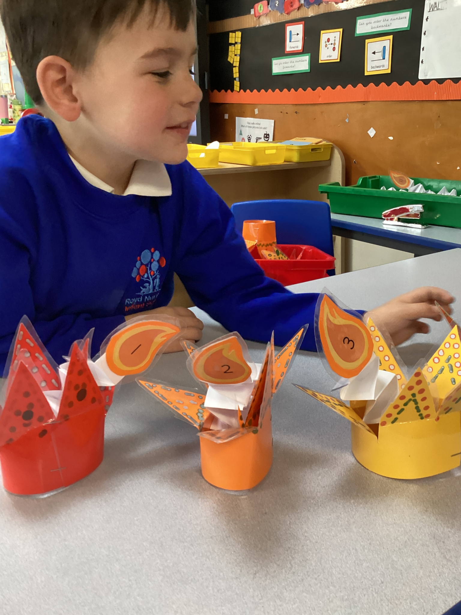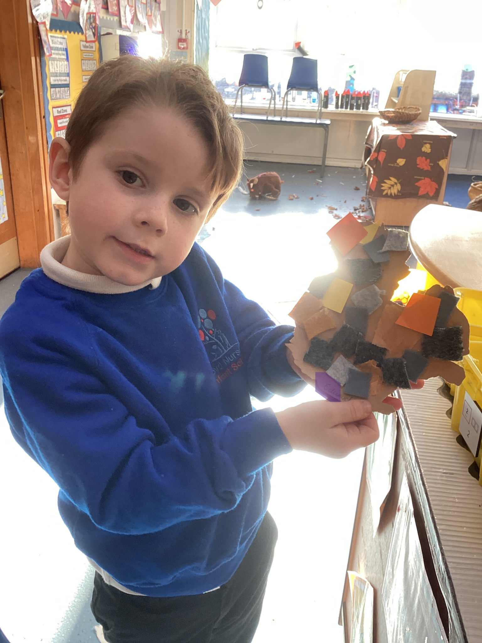 In Class One we have had a busy start to the new term. As well as continuing our learning and understanding of Diwali ‘The Festival of Light’ we have started to think more about the season of Autumn and what changes we have noticed including, change in colours, the weather and what our animals are starting to do to prepare for the Winter months. The children have enjoyed completing lots of autumnal activities, which link to their current learning e.g. reading sounds and words off falling leaves and ordering squirrels, then giving them the correct number of acorns. We have also enjoyed completing lots of creative tasks and using our imaginations when engaging in our small world areas. We have recently just started thinking about shadows and how they are formed and we have been having lots of fun playing the game ‘what am I? based on the silhouettes that we can see. Class One are already starting to think about Christmas and are getting excited for the festive few weeks ahead!