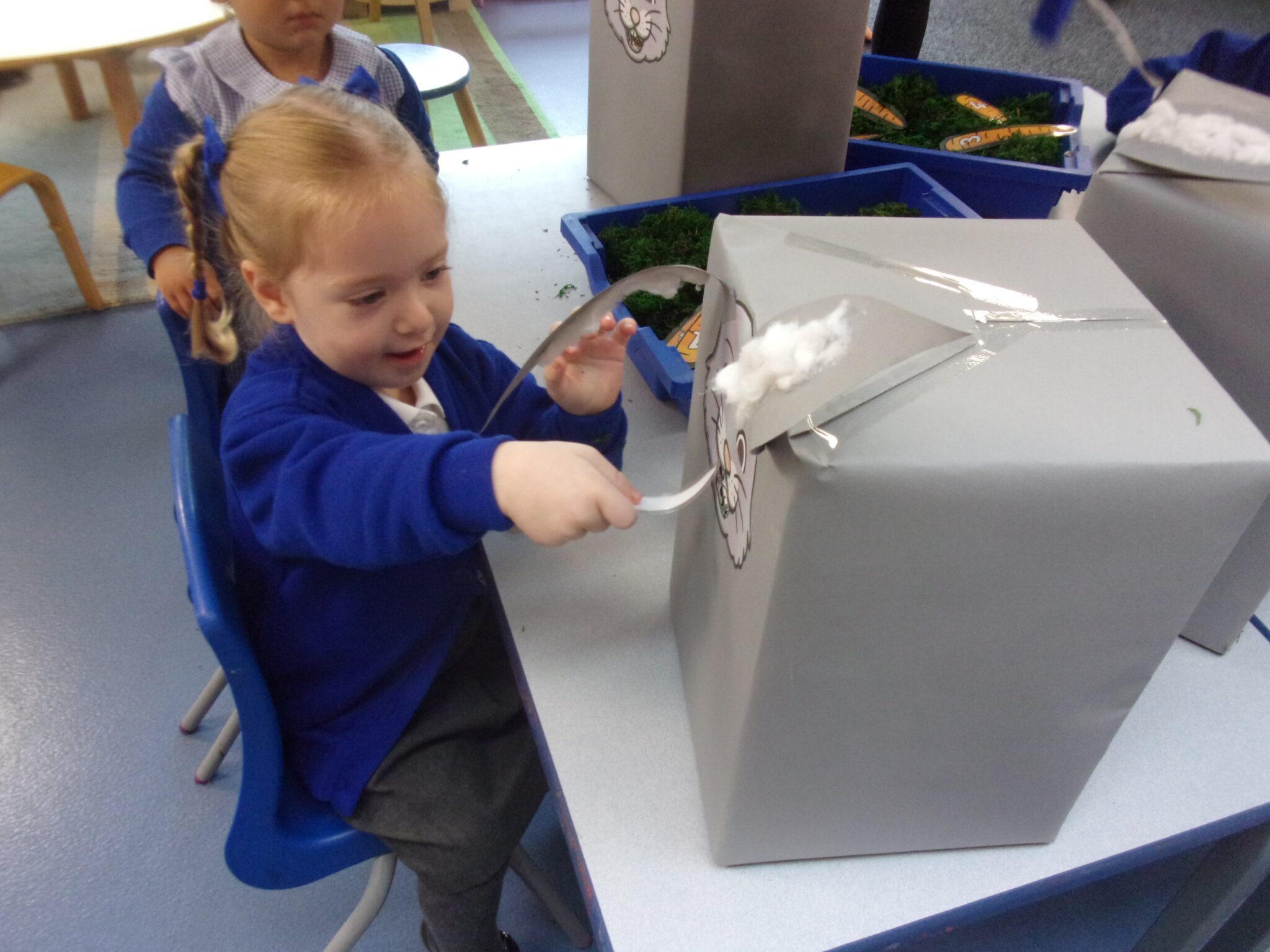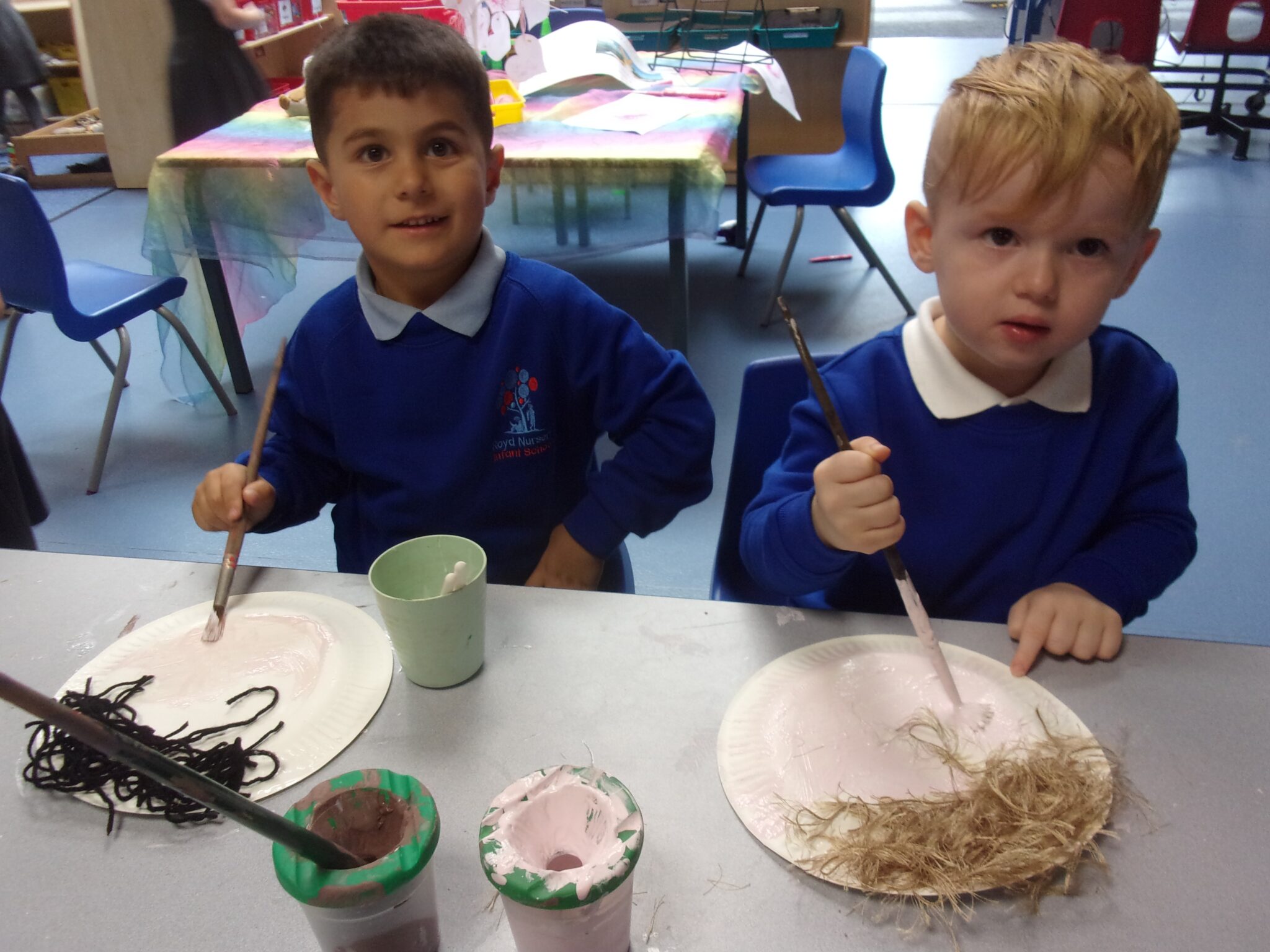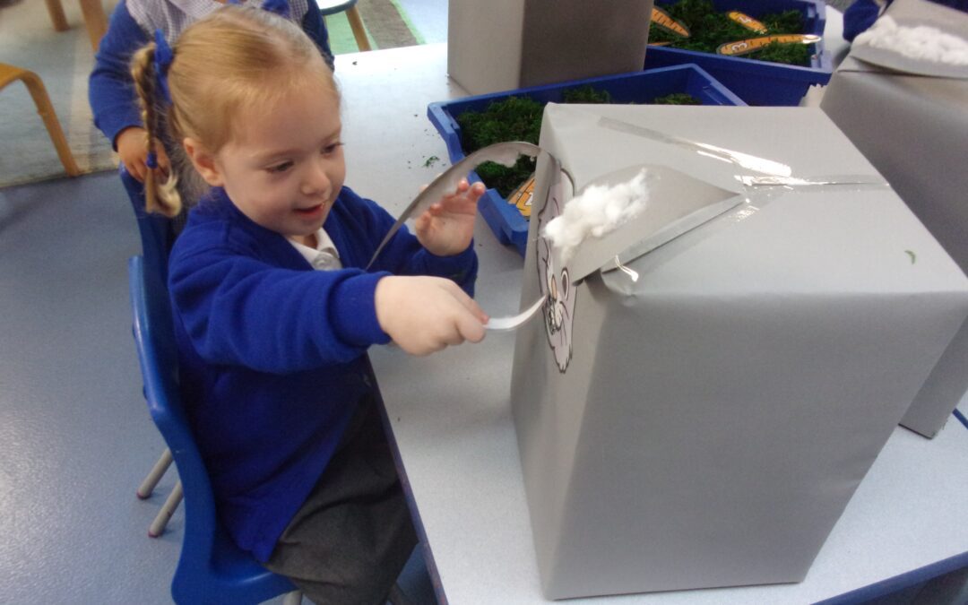 We have been immersed into our topic looking at what our faces look like and what features we all have, talking about similarities between us all and differences too. We have made paper plate faces and painted self-portraits of ourselves too. Outside, we have enjoyed working through our obstacle courses, climbing our climbing posts and hiding and moving through the tunnel with our friends.